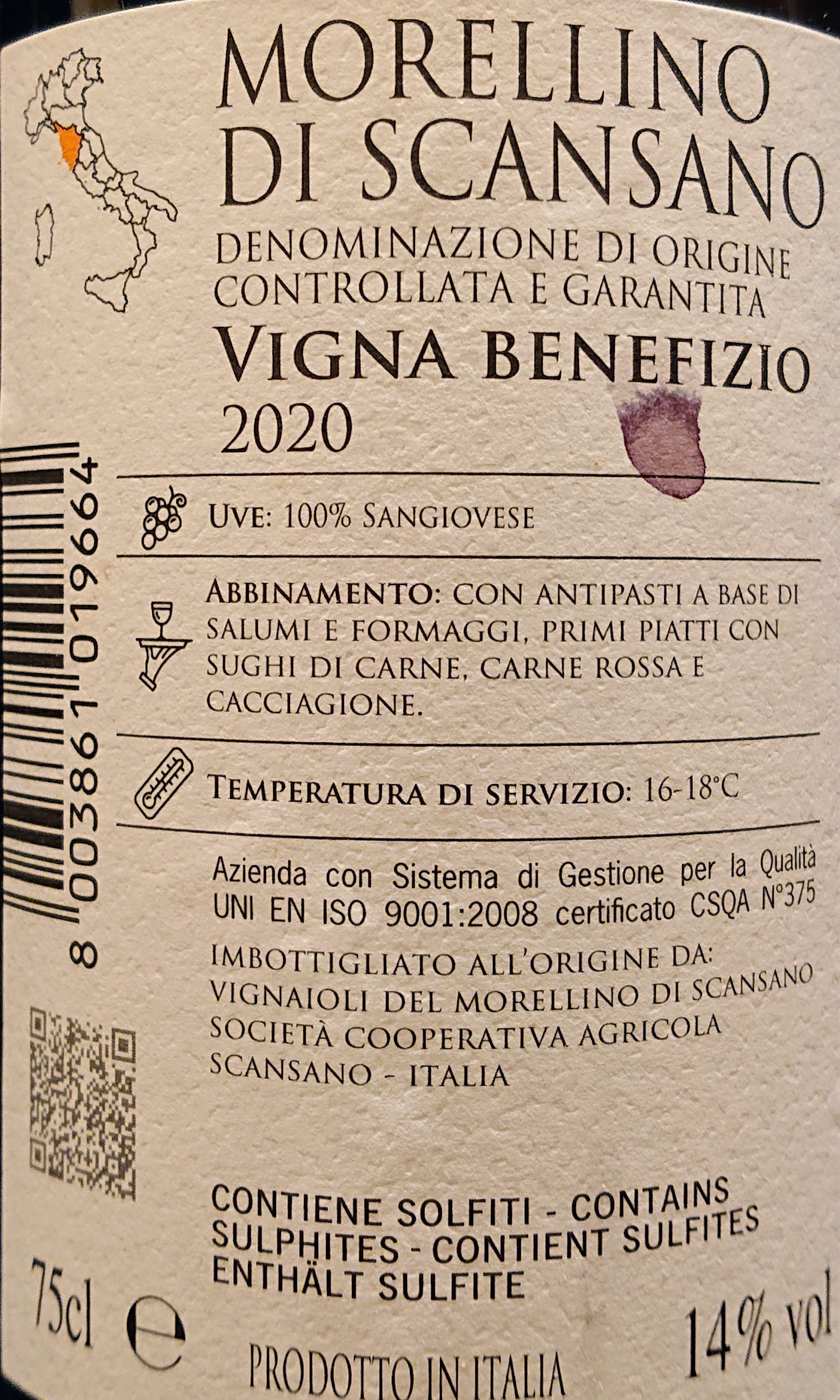 L’assaggio di oggi è la prova provata – se mai ce ne fosse stato bisogno – del perché questo blog “se non ci fosse, dovremmo inventarlo”🤩. Ego smisurato a parte😜, sono molto felice di raccontarvi l’assaggio odierno di… – spoilero – un grande vino toscano ad un piccolo prezzo: Morellino di Scansano DOCG Vigna Benefizio 2020, realizzato dalla Cooperativa Vignaioli del Morellino di Scansano [scoprila qui]. Etichetta bella ma non bellissima, vino di color rosso scuro profondo, con effluvi di frutti rossi e arancia sanguinella, al naso. Al palato é di bella struttura e di notevole persistenza, con una succositá di beva che sorprende ed emoziona. E, come se non bastasse, questo Morellino ha anche un’autenticità di beva che lo fa diventare – come dire? – appetitoso, cioé di infinita RiBevibilitá. Applausi👏👏👏 a scena aperta per questo Morellino di Scansano CAPOLAVORO🏆, che non finisce di stupirmi anche sul lato prezzo: con un po’ di ricerca (e fortuna: io l’ho trovato al super!) é possibile trovarlo ben al di sotto dei 10€🤑 e quindi, rileggetevi il title…⬆