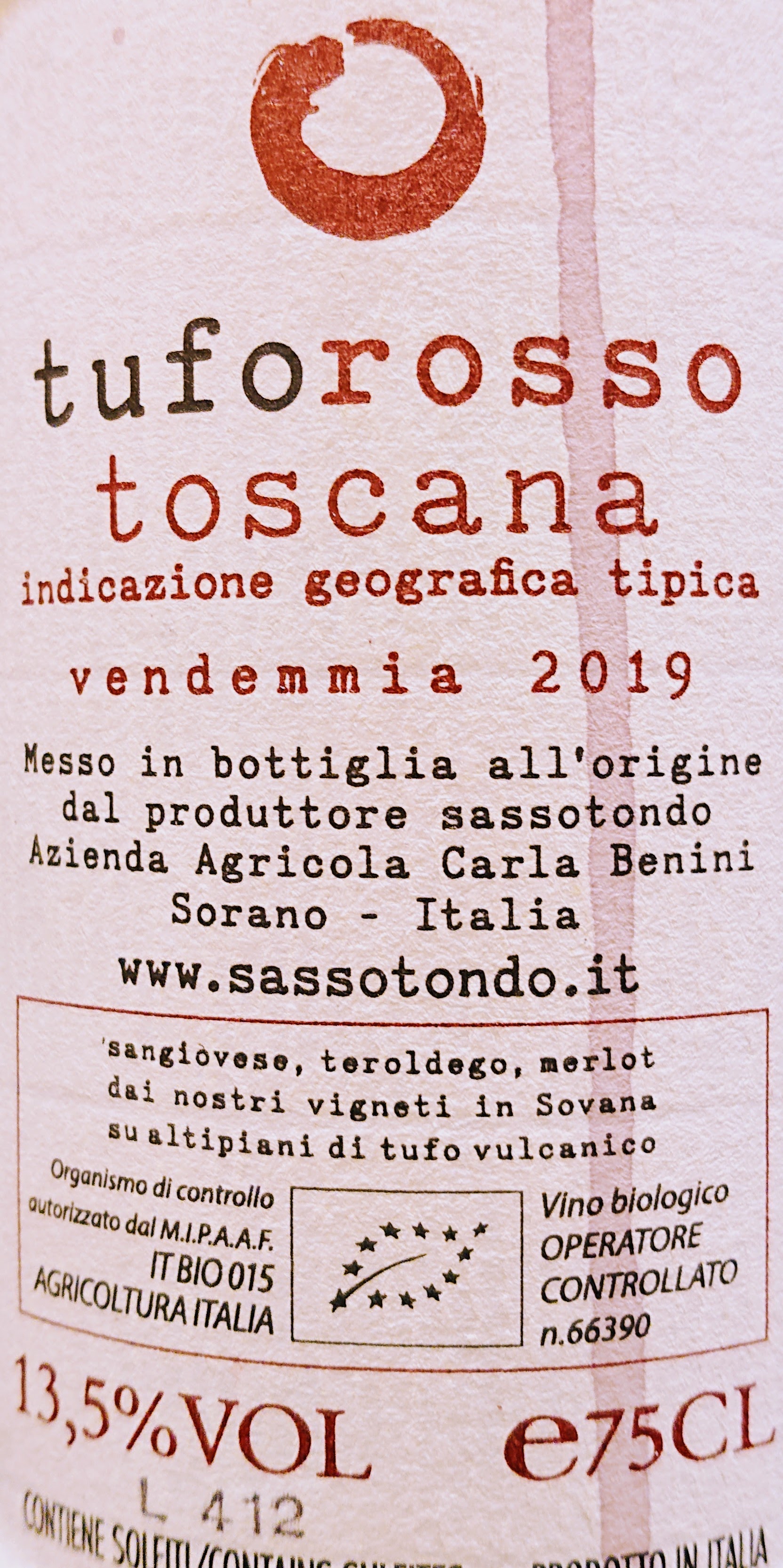 Oggi siamo nella bassa Toscana, in quel di Sovana, che è una frazione di Sorano, nel grossetano. Le rime non sono volute😁, ma sono il frutto del mood “emotional” con il quale racconto gli assaggi di vino🍷, cioè rido quando le scrivo e non le correggo quando rileggo…😜 (si vede che è Agosto eh?🏖). Bando alle ciance e andiamo ad assaggiare questo Toscana IGT Tuforosso 2019 griffato Sassotondo, una piccola grande cantina artigiana che fa dell’autenticitá e del biologico, i 2 punti fermi della loro piccola produzione vinicola: 50.000 bottiglie. Al timone di Sassotondo [scoprila qui], la coppia – nel lavoro e nella vita – Carla Benini~Edoardo Ventimiglia, con il supporto dell’enologo Attilio Pagli (un nome, una garanzia). Tuforosso si presenta mooolto rosso – rubino profondo – ed emana profumi di frutti rossi di bosco e prugne cotte, con un’eterea nota acetica che incuriosisce. Attacco in bocca succoso e dinamico, con una vinosità fruttata che rende la beva divertente e beverina. Quella nota rustica notata all’olfatto, ritorna anche al palato, ma è come se fosse “una firma”: Tuforosso è un vino genuino, biologico, senza chimica e non fa nulla per nasconderlo. Tra l’altro, sgocciolando la bottiglia, nel calice è apparsa anche la classica fondata, cioè la sedimentazione tipica dei vini non filtrati ovvero “la ciccia dell’uva🍇”. Insomma, senza inutili panegirici, Tuforosso 2019 è un vino STRABUONO💘 di fascia altissima, a un soffio dal capolavoro. Perfect match: pecorino toscano e tagliere di affettati, ma anche un cacciucchino (alla livornese, of course😋) – avendo l’accortezza di servire il vino refrigerato sotto i 12°- potrebbe sorprendere i talebani del “vino rosso con il pesce, mai”🤩.