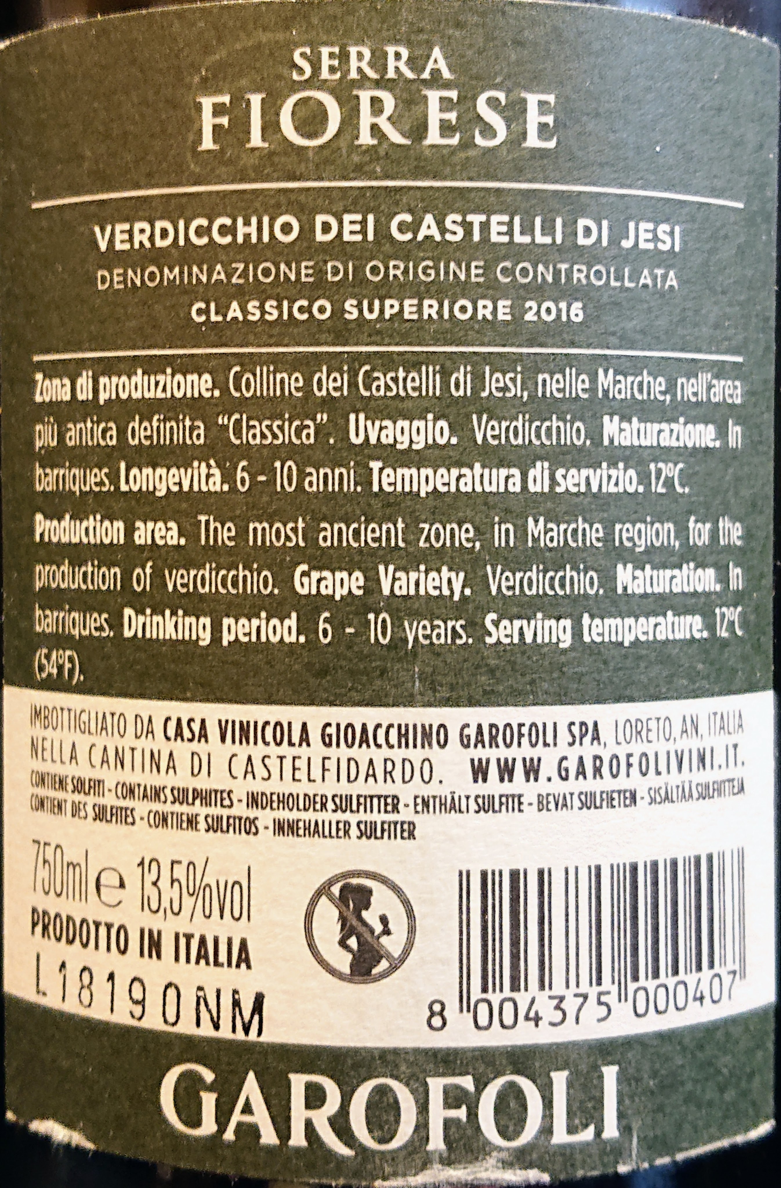 Un secolo non basta a raccontare la storia dei vini realizzati a Castelfidardo, nelle Marche, dalla family Garofoli. Di conseguenza, i Garofoli [scopri qui la Cantina] sono portatori sani di conoscenza, competenza, cultura, passione, nella vinificazione delle uve verdicchio (e non solo). Di scena oggi, l’annata 2016 del Verdicchio Superiore Serra Fiorese, un bianco marchigiano che ammalia immediatamente appena lo si versa nel calice: è giallo intenso dorato e profuma di frutta a polpa gialla stramatura, con la pesca🍑 tabacchiera in evidenza, contornata da miele e spezie. Sul palato è di struttura ricca, fruttata e di bella densità, a preannunciare un sorso d’inusitata eleganza e piacevolezza di beva, con una persistenza lunghissima e un retrogusto che lascia ben impresso sulle papille linguali, i sapori e le emozioni di un Verdicchio dei Castelli di Jesi DOC Classico Superiore INEGUAGLIABILE, grazie ad una cremosità e una ricchezza di beva fuori dall’ordinario, davvero suuuper. 5 coppe🏆🏆🏆🏆🏆 strameritate a Carlo Garofoli, nel duplice ruolo di agronomo ed enologo, che ha saputo valorizzare al meglio questa fascinosa annata 2016 del cru Serra Fiorese. Applausi👏👏👏 scroscianti e interminabili…👏👏👏