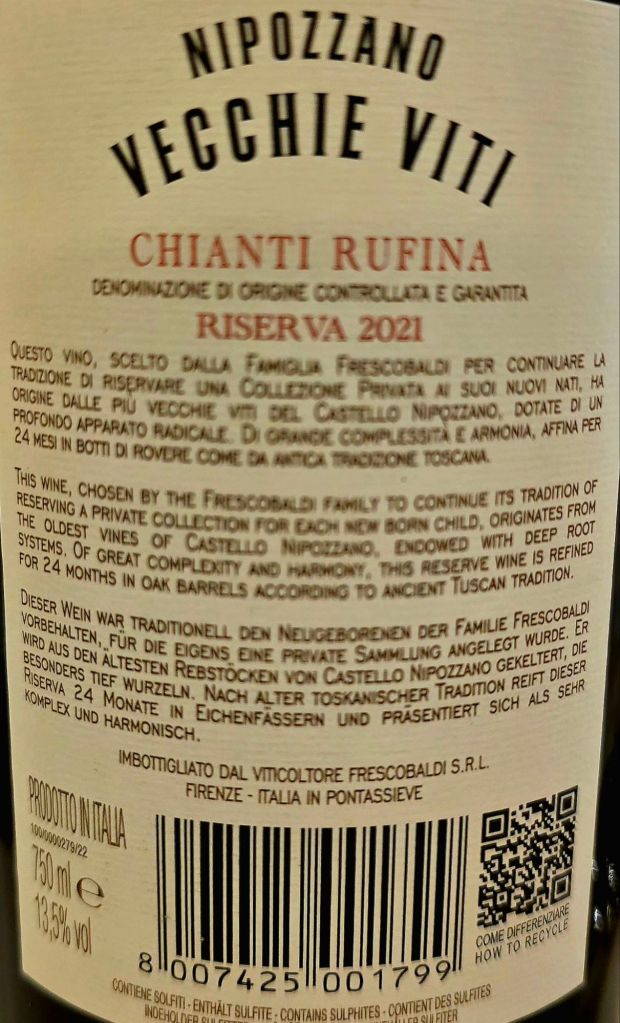 Proprio così: l'assaggio odierno va a toccare la Toscana - terra di rossi e vini top - e la Cantina Frescobaldi: un nome, una storia, che non sta certo a me l'onere/l'onore di presentare [scoprila QUI]. A me spetta il racconto dell'assaggio: che si apre con i classici profumi chiantici [termine fantasioso ma inesistente🤪 che vuol dire: tipici del Chianti] di viola a mammola e ciliegia🍒, qui con un pouffe di spezie/caffè, sullo sfondo. In bocca entra fin troppo timido, quasi nascondendosi, giocando tra le parti fruttate e le nuances legnose. Pausa⏸️. Cambio calice: prendo quello grande, apposta per i vini "riserva", e mi scaraffo nuovamente il Vecchie Viti... cambia tutto!🤯😱 Wow🥰: ora c'è tutta la pienezza del frutto, adagiata su un sontuoso mix di note balsamiche, legnose e pure cioccolatose! Retroscena: 4 anni fa avevo già assaggiato la versione "basic" di questo vino [scoprila QUI] che già era risultata notevole. Qui, però, siamo nella categoria superiore. E infatti, anche l'algoritmo qualitativo se ne accorge e posiziona direct🔝 in fascia INEGUAGLIABILE questo Chianti Rufina Riserva DOCG Nipozzano Vecchie Viti.