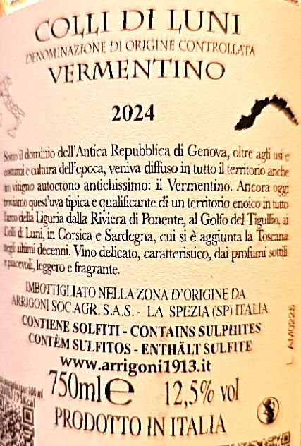 ...che è la Tenuta della spezzina Arrigoni, Colli di Luni, che quindi è sinonimo di Vermentino. L'Ampelos 2024 si presenta giallo paglierino brillante, con profumi netti di cedro, pompelmo e muschio. In bocca entra un filo acidulo, nel senso che si fa riconoscere alle papille linguali con la parte agrumata, citrina. Ma va anche detto che tale sensazione viene meno dopo una mezz'ora successiva all'apertura della bottiglia. L'anima di questo Vermentino Colli di Luni DOCè l'immediatezza, la freschezza di beva. Chi ama uno stile vinicolo più "accomodante", più suadente, dal sorso morbido~amabile, stia alla larga dall'Ampelos. Chi invece predilige un bianco fresco, agrumato e non impegnativo - magari in abbinamento ad un pesce infornato - può fare incetta di bottiglie dello STRABUONO Ampelos, che si guadagna le sue 3 coppe🏆🏆🏆 di merito, con estrema nonchalance. Ottimo il rapporto emozioni/prezzo: io l'ho accattato a 12 €uro. Per quel che riguarda la produzione, è tutta una questione di famiglia: Andrea Arrigoni, in vigna e Sara Arrigoni, in cantina.