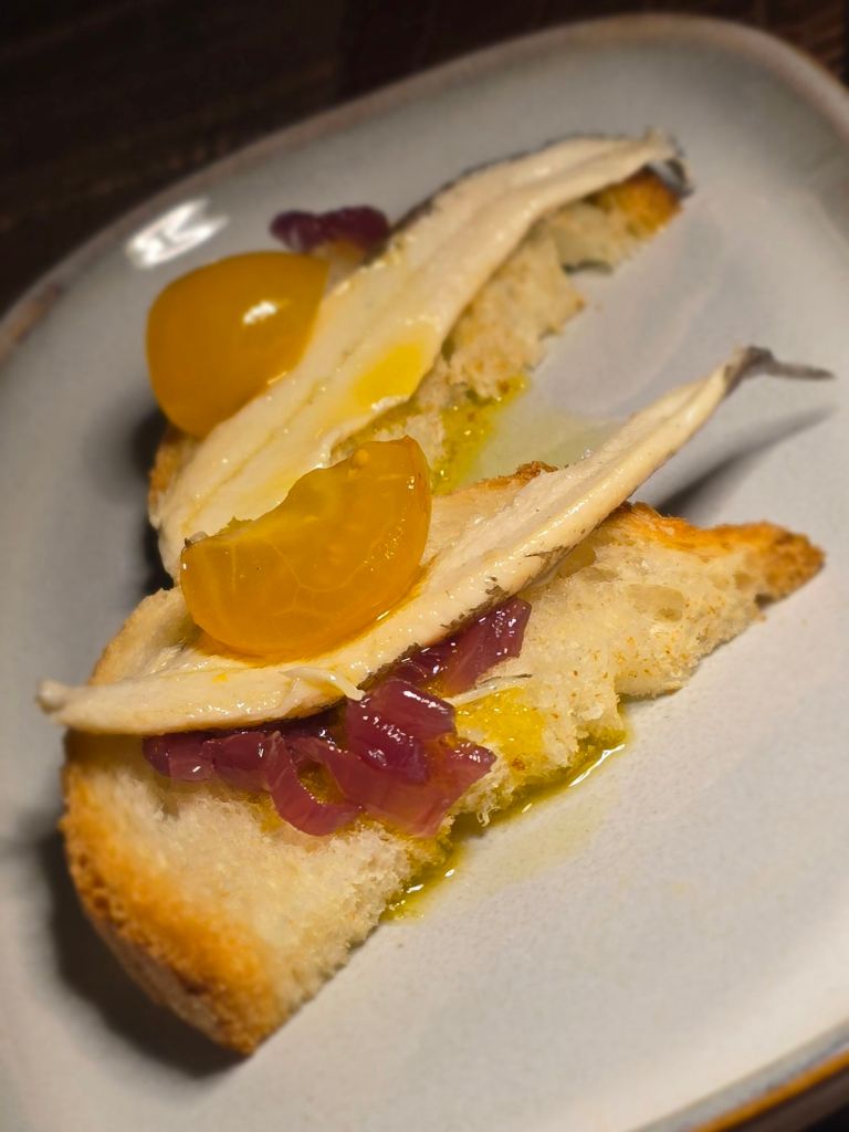 Oggi siamo a Riccione, all'Osteria Dal Minestraio - a pochi passi dalla foce del Rio Melo che si tuffa nel Mar Adriatico e a 700 mt. dal "mitico" Viale Ceccarini - dove il patron Alessandro, appena entrati, ci dà il benvenuto e ci fa accomodare al tavolo prenotato anzitempo. Ambiente sciccoso, ma informale. Illuminazione soffusa, al TOP! Menù ampio e originale. Servizio attento ma non "appiccicoso". Si parte con un entrée STRATOSFERICA, che da sola, vale il voto maximo alla voce "coccole"🥰: la foto sotto, ne è la prova...