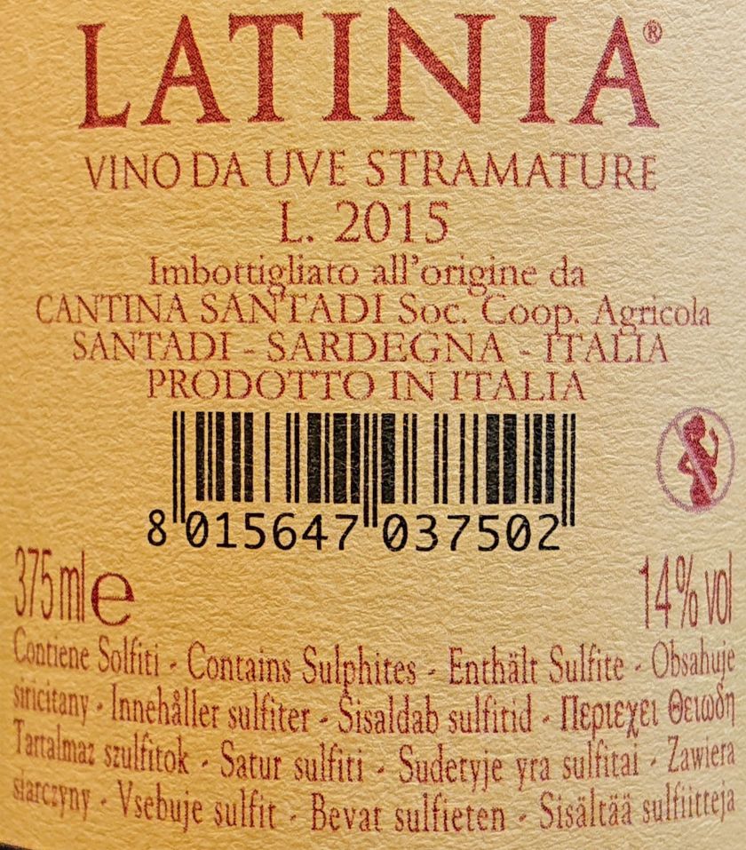 In bocca entra con raffinatezza ed eleganza, per poi sprigionare tutta la potenza dei frutti sopracitati, più un tintinnino di miele e soprattutto un pouffe di mandarancio, quasi a chiudere il sorso con una nota rinfrescante, agrumata. Lungo e persistente il finale, una performance da "grande" vino. Sulla controetichetta di questo Latinia 2015 griffato Santadi - nota cooperativa sarda da quasi 2 millioni di bottiglie l'anno, 1,8 per la precisione - si legge: "vino da uve stramature". E proprio grazie ad una vendemmia tardiva, le uve stramature si percepiscono tutte, per la gioia di un vino dolce CAPOLAVORO, mai stucchevole, di grande equilibrio e pulizia palatale: 4 coppe🏆🏆🏆🏆 di fascia alta strameritate!