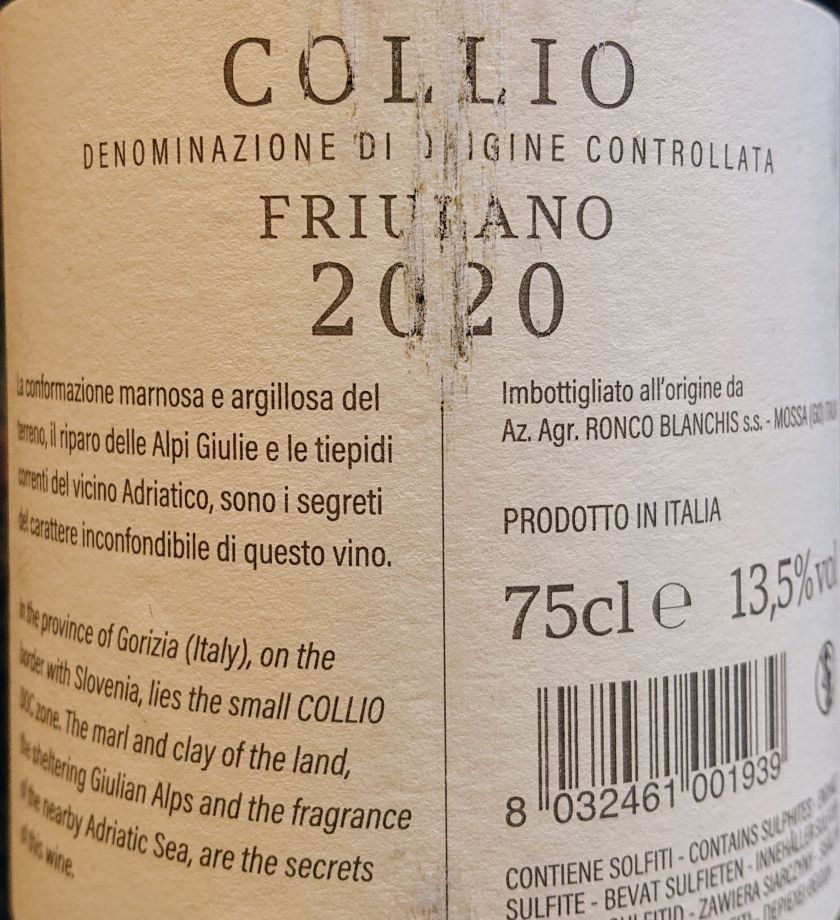Oggi siamo in Friuli e, più precisamente, a Mossa, nel goriziano. È lì, in quei colli, che nasce il bianco in assaggio oggi: è il Friulano 2020 targato Ronco Blanchis, un'Azienda capitanata da Giancarlo Palla & family.