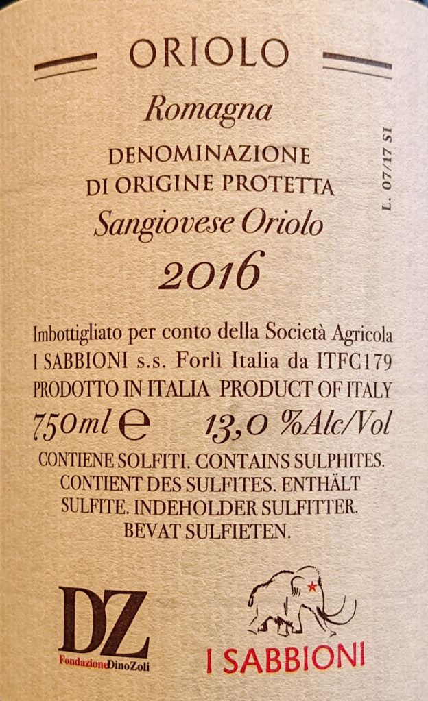 E ora ci siamo: il termometro segna 14,6°C, le papille linguali percepiscono un vino di valida densità, materico, con un letto di prugne, ribes e amarene🍒 "ad aprire le danze". La struttura è impeccabile, in un equilibrio frutto/tannino di alto livello: se avessi bevuto questo rosso romagnolo in un "test alla cieca", avrei potuto tranquillamente scambiarlo per un supertuscan dal costo stellare. E a proposito di prezzo... io l'ho comprato a meno di 20 €uro, ma sono pronto a scommettere che questo Oriolo 2016 farebbe vedere i sorci verdi ai cd. "vini iper-costosi": 4 coppe🏆🏆🏆🏆 abbondanti! Unico neo in questo "quadretto aulico" è la scritta sulla controetichetta🤬: 《imbottigliato da ITFC179 per conto de I SABBIONI》. Post Scriptum: ora, dico... si può sapere chi è il produttore di questo CAPOLAVORO❓️ Mistero risolto: leggi sotto. Post Scriptum bis: la 5° coppa🏆 (mancata) è proprio colpa di tale mancanza di trasparenza.Post Scriptum ter: dalla regìa mi dicono che il produttore è Noelia Ricci/La Pandolfa. Non capisco perché nasconderlo pubblicamente e sostituirlo col codice SIAN...