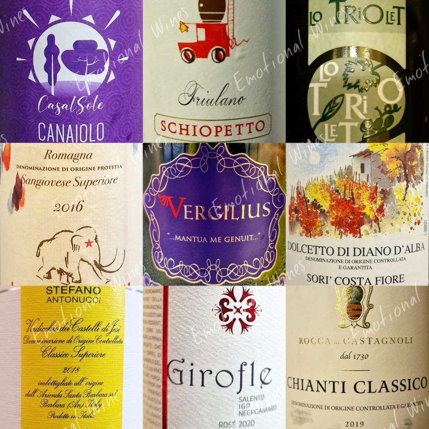 “Ma che bel giro-vino, marcondirondirondino”🎶 per questo mese di Agosto! Assaggeremo, in ordine sparso: l’Orvieto umbro Villa Barbi di Decugnano dei Barbi, il Pinot Bianco altoatesino Schulthauser di San Michele Appiano, il Vermentino Nero ligure di Lunae-Bosoni, il Fiano di Avellino campano di Tenuta Scuotto, il Prosecco veneto Cartizze Brut Vigna La Rivetta di Villa Sandi, il rosato salentino DiciottoFanali di Apollonio, l’Albana secco romagnolo Vigna Rocca di Tre Monti, la Bonarda lombarda di Isimbarda (non è un gioco di parole, è proprio così!😳) e un poker di toscani quali la Vernaccia di San Gimignano di Panizzi, il Tuforosso di Sassotondo, il Chianti Classico Rocca di Montegrossi, il Bolgheri di Micheletti. Puó bastare per l’Agosto più emotional di sempre?🤩