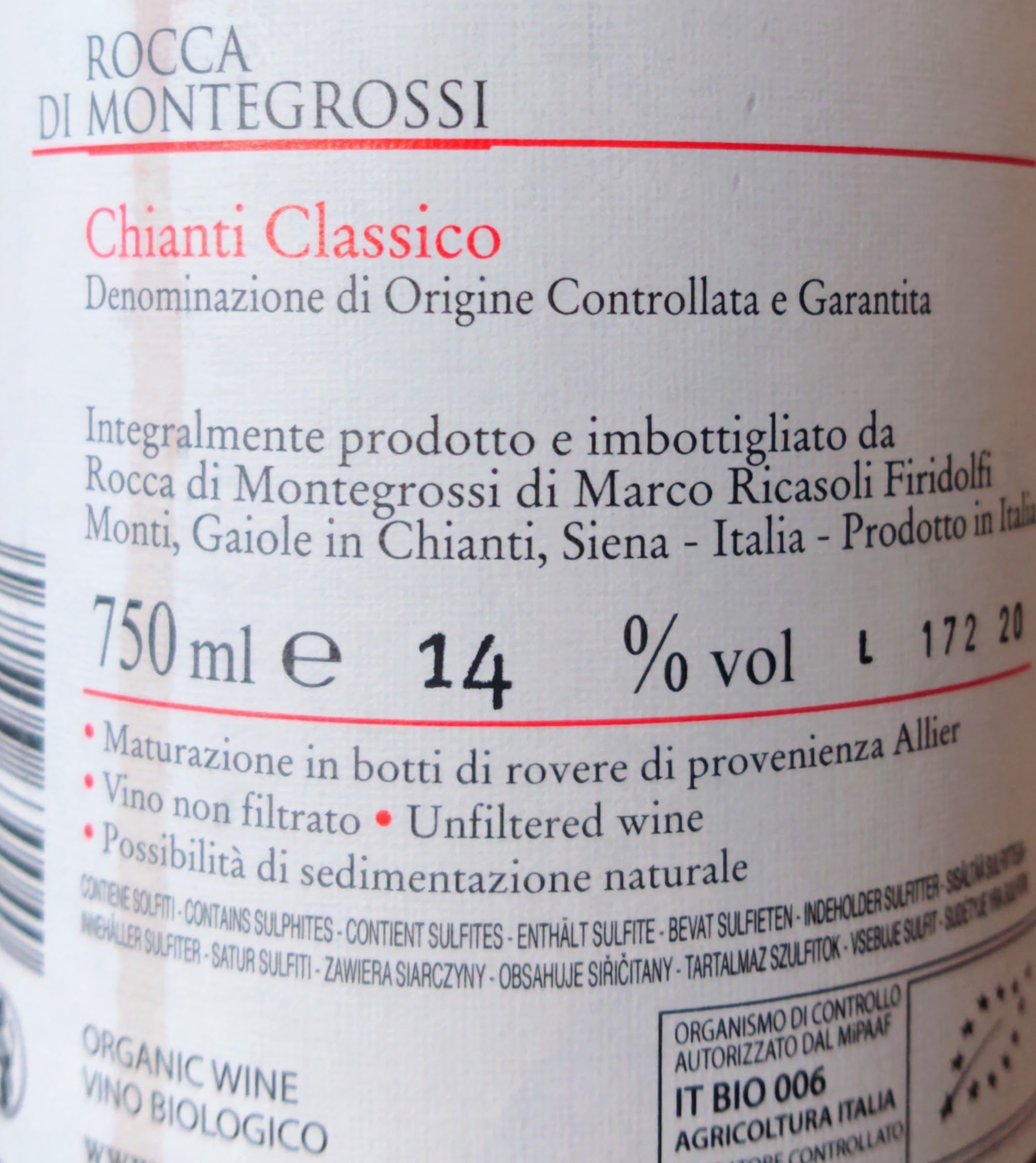La zona di Gaiole – al pari di Radda, Greve, Castellina, Panzano – è una delle zone privilegiate per la produzione della DOCG Chianti Classico. In assaggio oggi, la versione 2018 realizzata da Marco Ricasoli Firidolfi, proprietario della Rocca di Montegrossi [scoprila qui], con l’ausilio enologico del “big” Attilio Pagli. Le premesse di un assaggio TOP🔝 ci sono tutte, vediamo se saranno confermate: il Chianti Classico 2018, con il logo del Gallo🐓Nero a collo bottiglia, si presenta visivamente di un bel rosso rubino splendente, senza farsi mancare dei discreti archetti mentre scende nel calice. Profumi classici di viola mammola, prugne, more, mirtillo selvatico e spezie dolci. Attacco in bocca non troppo polposo, con la struttura e la vinositá che sembrano un po’ svogliati, rispetto ad altri vini della stessa tipologia [leggi qui l’assaggio del Chianti Classico Castello di Radda]. Anche la persistenza è buona ma non si grida al miracolo, pur con un buon retrogusto lungo e nitido a chiudere la beva. Non giriamoci intorno, il Chianti Classico DOCG 2018 Rocca di Montegrossi è STRABUONO💘 di fascia altissima, ma forse l’annata inferiore ad altre più felici, non ha aiutato ad esaltare le potenzialitá di questo grande vino toscano. Mi riprometto un doppio assaggio futuro per Rocca di Montegrossi: la versione 2019 o la 2020, ma anche il cru “Gran Selezione” Vigneto San Marcellino, che promette meraviglie e potrebbe ambire alla fascia “ineguagliabile”. L’ho promesso pubblicamente, quindi… stay tuned! 🤩
