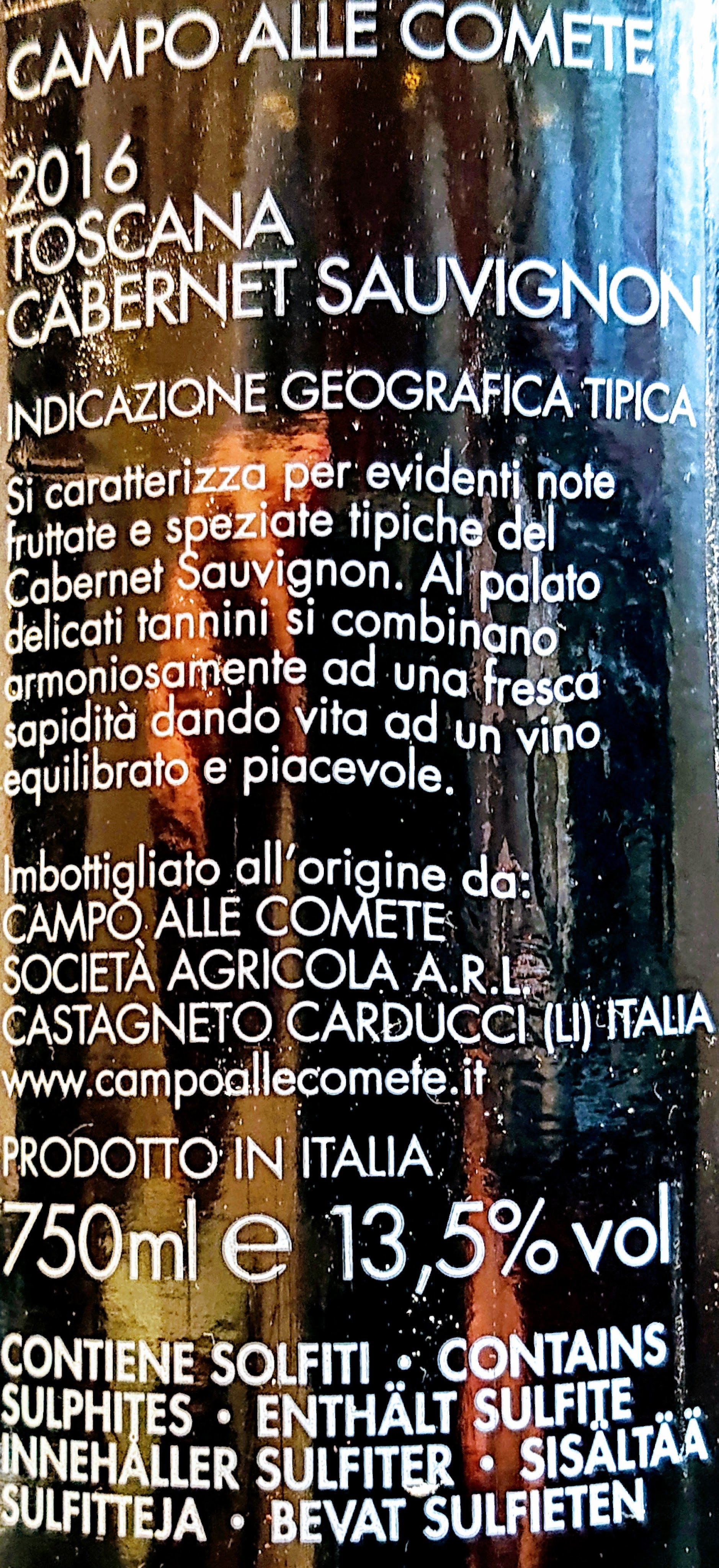 Non capita spesso, di trovarsi davanti a bottiglie che modificano in modo importante l’impatto organolettico, in funzione del tempo che passa dopo averle stappate. Intendiamoci: che un vino abbia bisogno di un tempo tecnico “per aprirsi” é cosa nota. E spesso, basta un’oretta, o qualcosa in più per i vini Riserva, per poterli tranquillamente gustare al loro massimo potenziale espressivo. Talvolta, si puó pure esagerare ed aprire un vino 5 o 6 ore prima di berlo; ma arrivare a 48 ore, prima di “carpire l’anima” di un vino, é cosa davvero rara. É successo con l’assaggio di oggi, un Cabernet Sauvignon in purezza, proveniente dalla zona di Bolgheri, realizzato dalla cantina Campo alle Comete. Bella ed essenziale l’etichetta : : colore rosso rubino profondo : : naso rarefatto di prugna e more di rovo : : attacco in bocca esemplare, quasi timido di prim’acchito, ma poi sontuoso ed emozionante nell’aprirsi a ventaglio, regalando alle papille linguali una beva elegante, morbida e decisamente intensa, come raramente capita in un vino non Riserva. Certo, l’annata é la “magica duemila16″😍 e questo sicuramente ha aiutato struttura e persistenza, non slegate da un retrogusto ciliegioso🍒 da maximo voto. Il 1° e il 2° giorno peró, tutte queste emozioni intense di un vino CAPOLAVORO🏆, non erano percepibili😳. Se dovessi dare una spiegazione dell’accaduto, ipotizzerei un’ ipersensibilitá a temperatura di sevizio e ossigenazione: nei primi 2 giorni, l’ho testato prima a 15° (siamo in estate e in genere i rossi beneficiano di qualche grado in meno dei canonici 18°~20°) e poi a 20,5° e non mi convinceva. Il 3° giorno, a 18° micrometricamente controllati🌡, è uscita fuori l’anima di questo Cabernet Sauvignon Toscana IGT 2016 Campo alle Comete. E che anima!🍷