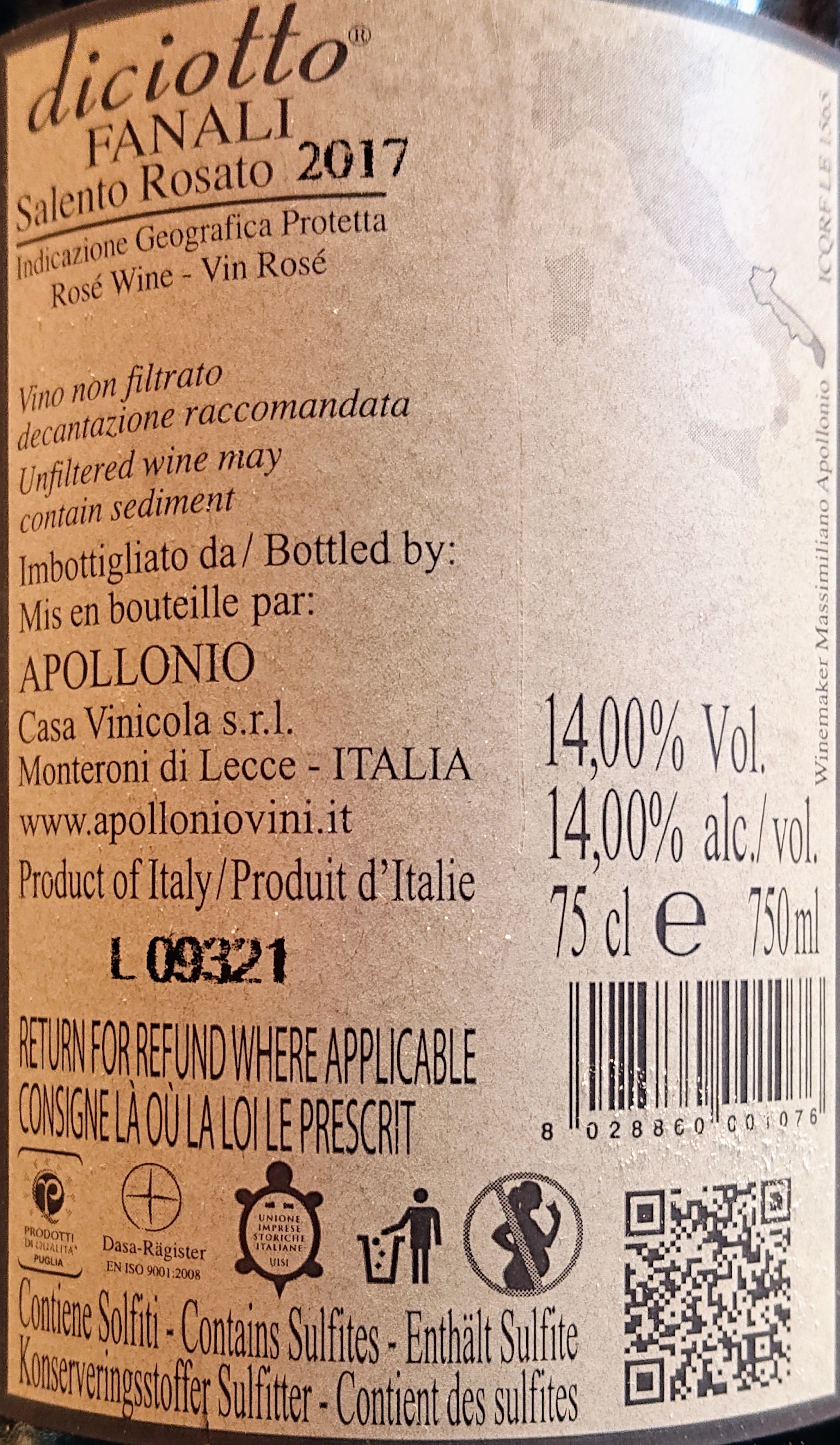 Post Scriptum bis: Apollonio Diciotto Fanali Salento Rosato IGP 2017, me lo riannoto… per non dimenticarmelo mai🥰😍.